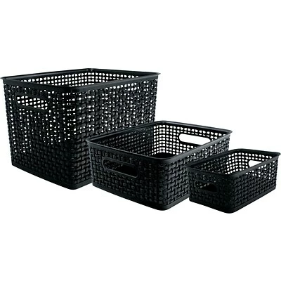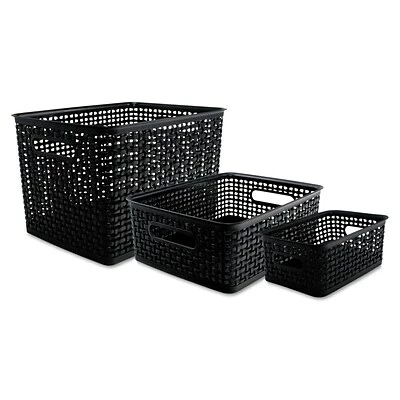 Advantus® Black plastic weave bin accommodates CDs, DVDs and office supplies, sold as 3 per pack.