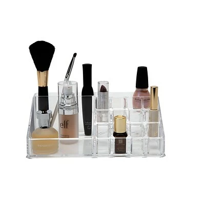 Keep all of your finishing touches in one place with this Laura Ashley 16-Section Curved Cosmetic Holder. This accessory is ideal for a bathroom, vanity or dresser. It will help you get ready quickly when you’re on the go. You can keep makeup, rings or earrings easily within reach and organized. This jewelry holder is transparent for your convenience.