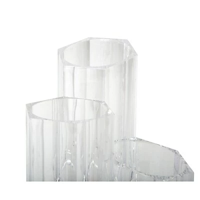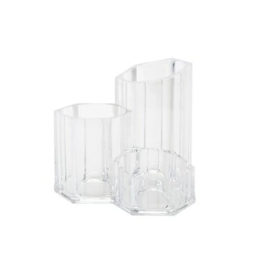 Keep your makeup organized with the Laura Ashley 3 compartment makeup brush holder. With its clear acrylic design it will match any dรฉcor in any room. Can also be used in your bathroom for q-tips, cotton balls and more!