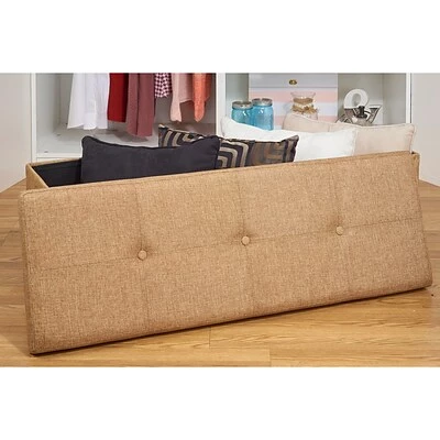 The Simplify Storage Ottoman is the perfect addition to any household. Easily to construct the ottoman serves as storage, a foot rest, additional seating and more! The cushioned top makes it comfortable to rest your feet or sit on. The hidden storage is perfect to store away those items you don’t want laying around. When not in use the ottoman can be folded and put away.