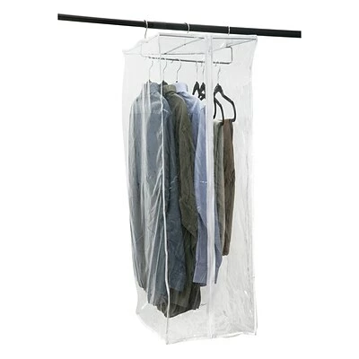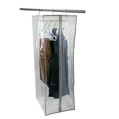 Keep your suit or favorite fancy clothes clean and protected with the crystal clear hanging closet. Clear and durable PVC material allows easy viewing of items without having to open the bag. The zipper gives you easy access to the garments inside. Protects your clothing whether your traveling or it is just hanging in the closet.