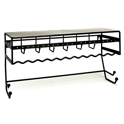 Make your morning or evening routine a breeze with the Simplify Wall Mount Jewelry & Accessory Organizer. It can store and display your favorite jewelry with its necklace hooks, bracelet bars, and an earring bar. Top of organizer acts as an extra shelf for cosmetics or other accessories. Attractive wall-mounted design showcases your jewelry and makes everything easy to find. Easy to install. Includes template and all mounting hardware needed.