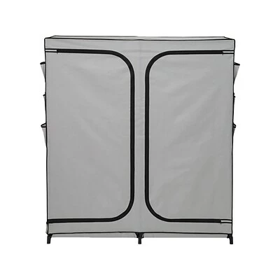 At 5′ wide and nearly 2′ deep, this covered wardrobe rack affords the hanging space of most traditional closets