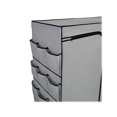 Features 18 side storage pockets for tucking in shoes, handbags, or other accessories