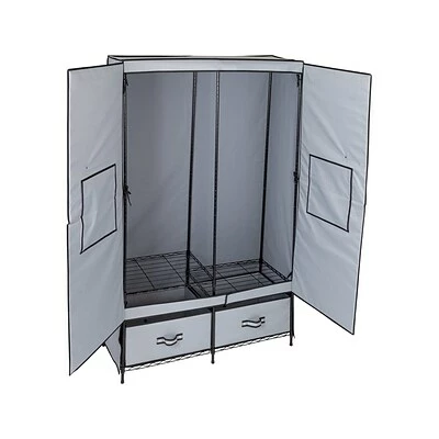 Those items you only touch twice a year don’t really need to stay in your closet, do they? Imagine the closet capacity if you stashed away the party clothes and formal winter coats until you need them. Give those items another home with this sturdy clothes storage wardrobe by Honey-Can-Do. This freestanding closet has a 43″ garment rod to hold all of your closet overflow, and the breathable fabric cover will keep your favorite items from getting musty or dusty. Two convenient bottom drawers provide additional storage for shoes, boots, belts, and other clothing accessories.