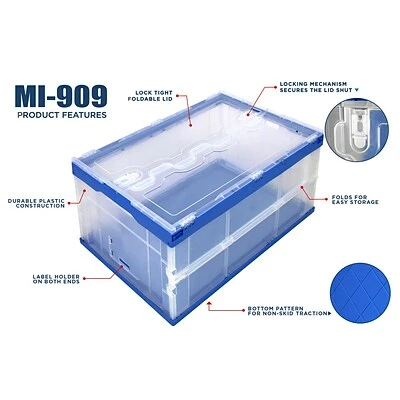 This Mount-It! collapsible bin can carry up to 69 qt., making it large enough for personal or commercial use, but can fold down to a 3″ height for easy storage and portability. The heavy-duty, plastic construction can handle light jobs from toting groceries, file storage box, store toys and sporting equipment, or used for tougher projects like home improvement, gardening, tool storage, or as a distribution container. Utilize the side label holders to improve organization.