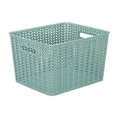 Simplify Large Herringbone storage tote keeps your items stove away keeping them safe and organized. Hides mess and gives your room a neat look. This item is made of plastic easy to clean and comes in different sizes to fit your needs and color to fit your taste, when not in use can be stackable. It’s design is a herringbone pattern for a stylish look.