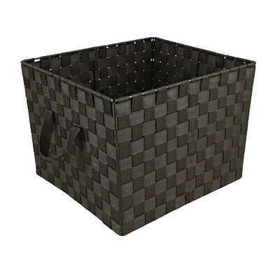 Simplify Large Black Woven Strap Tote has a modern and fashionable design. It is made from polyester and is suitable for organizing and storing items.