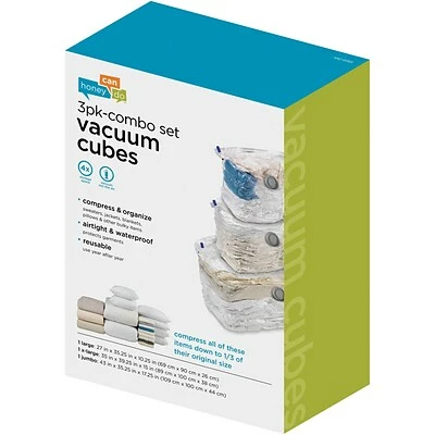 This vacuum cubes pack protects your clothing from dirt, bugs and other irritants. In addition, they are water and air tight to keep moisture out, and to prevent mildew. Just put the items into the bag and then use any vacuum cleaner with a hose to suck the air from your vacuum pack bag. This unit is reusable which makes them an excellent value.