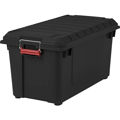 Our Store-It-All WEATHERTIGHT® Tote is heavy-duty and weather-resistant to protect contents from moisture, dust, and pests. Designed with the outdoorsmen in mind, these totes are ideal for camping, fishing, construction sites, and storage in basements and garages. For added security, the tote can be locked with a pad lock or zip tie.