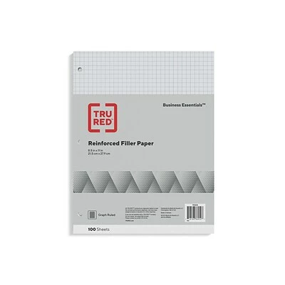 Create charts, graphs and other drawings with this reinforced graph ruled filler paper. Each sheet features standard 4 x 4 graph ruling to support charts, graphs, free drawing and notes, while the punched pages are easy to use with standard three-ring binders. This TRU RED Business Essentials 8.5 x 11-inch reinforced filler paper offers 100 sheets, so there’s plenty of space to work with.