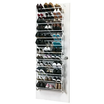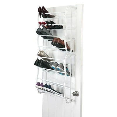The Simplify 36 Pair Adjustable Over the Door Shoe Rack grows with your shoe collection. The adjustable shoe rack can grow from one, two or three tiers depending on how many shoes it’s needed for. Each tier holds up to 12 pairs of shoes holding a total of 36 pairs of shoes. Without any tools the shoe rack mounts easily over most doors. Maximize your space in any room in the house!