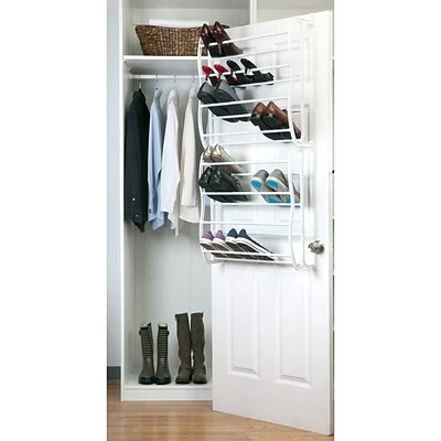 The 36 Pair Adjustable Over the Door Shoe Rack grows with your shoe collection. The adjustable shoe rack can grow from one to three tiers.