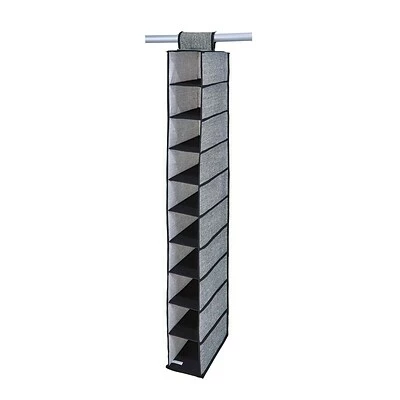 Simplify’s 10 Shelf Non-woven Organizer is made of 100% Polypropylene Nonwoven breathable Material that acts as instant organization for your closet or room. Contains 10 cardboard lined shelves to prevent bowing and to allow easy access to all of your shoes and accessories. Sturdy, durable fabric and cardboard liner helps maintain shape of the closet organizer. Easy installation hangs into any closet rods with it’s strong Velcro closure, and when not in use, simply fold it up and put in storage, saving space.