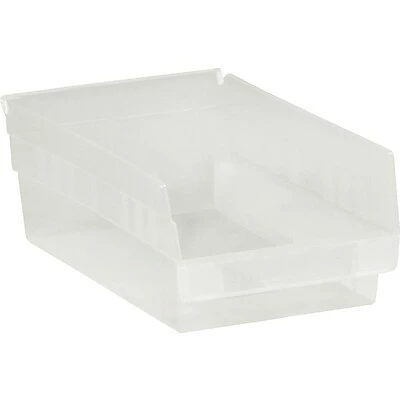 Quill Brand Plastic shelf bin box in clear is manufactured from FDA compliant polypropylene resins for added strength and durability. Bin box measuring 11 5/8″ x 8 3/8″ x 4″ has slotted label holder allows for easy insertion of label or identification card.
