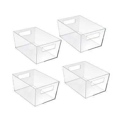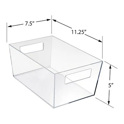 The Azar sleek multipurpose tote is perfect for any organization project or point-of-purchase sale. The crystal clear plastic allows for easy viewing of the contents inside and complements any decor. The wide-angled opening allows for ease of use, making items accessible. This quality tote is durable and functional, with two slotted side handles as an added bonus, allowing you to carry and move your items and valuables to different locations with ease. Use this tote in your office to organize drawers, craft room, kitchen pantry, closet, stockroom, school, or anywhere you want a clutter-free and organized space. This deluxe Azar tote can also be used as a merchandising solution for loose products near the cash wrap or for impulse buys in boutiques, museums, trade shows, at an event, or retail store.