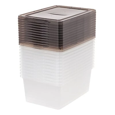 Put a lid on your clutter with this simple, snap-tight storage box. Our most versatile size, it’s perfectly sized to fit shoes, accessories, crafts, and more. The lid adds a dash of color while keeping your items secure, and the ultra-clear body allows you to see contents at a glance. Set of 12 boxes are stackable to maximize any storage space. Made in the USA.
