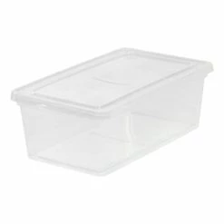 Cluttered closets are a thing of the past thanks to this classic storage box, perfectly sized for shoes, small accessories and more. This set of 12 boxes are stackable to help you make the most of your storage space. The snap-tight lid adds a dash of color while keeping your items secure, and the ultra-clear body allows you to see contents at a glance. Made in the USA.