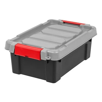 This 3 Gallon Store-It-All tote is great for keeping your garage or attic organized. The lid is designed for a bungee cord or strap to keep the tote secure while in the bed of a truck or on a shelf. See other items in this series to create a modular storage system: SIA-5, SIA-10, and SIA-18.