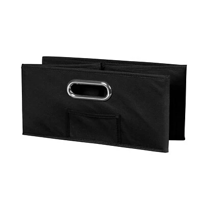 Find your Niche with versatile and modern Niche Fabric Storage Bins! Strong and durable, these bins each include a reinforced bottom panel that adds an extra layer of stability. With the bottom panel in place, they are sturdy enough to use on their own to hold paper, children’s toys, towels, toiletries, craft supplies and more. The bottom panel comes out and the entire bin folds flat for easy storage when not in use. Folded bins even fit perfectly inside an open one! Chrome handles are built into two sides of the bin, which makes carrying and moving it easy and worry-free. Inset handles are stronger than sewn-on cloth handles and won’t come unstitched or separate at the seams like cloth handles could. Measuring 12 x 12 x 5.5, Niche Half-Size Fabric Bins are truly square and integrate seamlessly into Niche Cubo storage cubes. They can be used in any direction- there is no “right” side to face front becuase all four sides measure the same! Personlize your bins by using the clear label holder on one side. Quickly and easily identify contents or assign bins to individual students. Ideal for every room in the house, make this Black Niche Half-Size Folding Fabric Bin a part of your home or office today!
