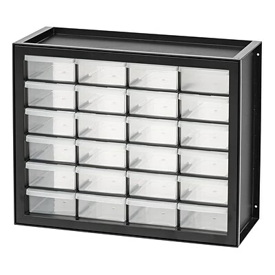 Whether you’ve got nuts and bolts or beads and buttons, the 24 drawer cabinet will help keep you organized. These conveniently sized drawers are great for holding an array of small pieces, and the built in lip at the back means they won’t fall out of the drawered cabinet when opened. Multi-drawer units are optimally designed for stacking or mounting on the wall to maximize storage space. Screw holes on the sides of the 24 drawer storage unit by IRIS mean you don’t have to put screws in the wall in advance, and ribs on the 4 corners keep the stacked drawered parts cabinet from falling over when moved side-to-side, front-to-back, or when opening drawers.
